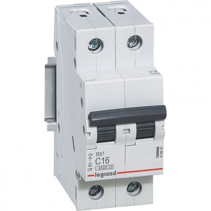 Двухполюсный автоматический выключатель Legrand серии RX3 типа C. Номинальный ток - 16А. Отключающая способность - 4,5кА. Размер - 2 модуля DIN (35 мм). Автоматические выключатели этой серии производятся в Европе. У них увеличенная износостойкость (10000 электрических и 20000 механических операций). Группа Legrand гарантирует качество и соответствие заявленным характеристикам. Товары серии RX3 рекомендуются к применению в реконструируемых и вновь возводимых жилых домах, при ремонте. Допускаются к установке на различных объектах (жилые комплексы, небольшие офисы и торговые помещения).