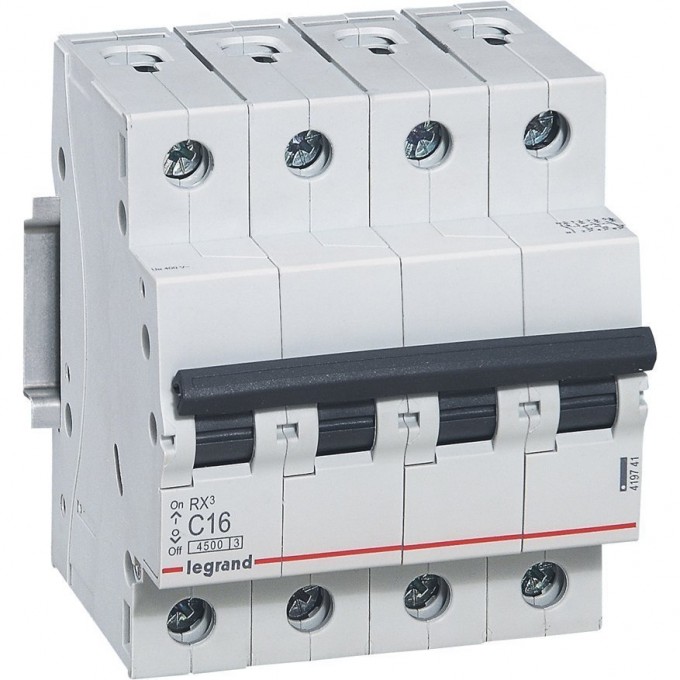 Четырехполюсный автоматический выключатель Legrand серии RX3 типа C. Номинальный ток - 20А. Отключающая способность - 4,5кА. Размер - 4 модуля DIN (70 мм). Автоматические выключатели этой серии производятся в Европе. У них увеличенная износостойкость (10000 электрических и 20000 механических операций). Группа Legrand гарантирует качество и соответствие заявленным характеристикам. Товары серии RX3 рекомендуются к применению в реконструируемых и вновь возводимых жилых домах, при ремонте. Допускаются к установке на различных объектах (жилые комплексы, небольшие офисы и торговые помещения).