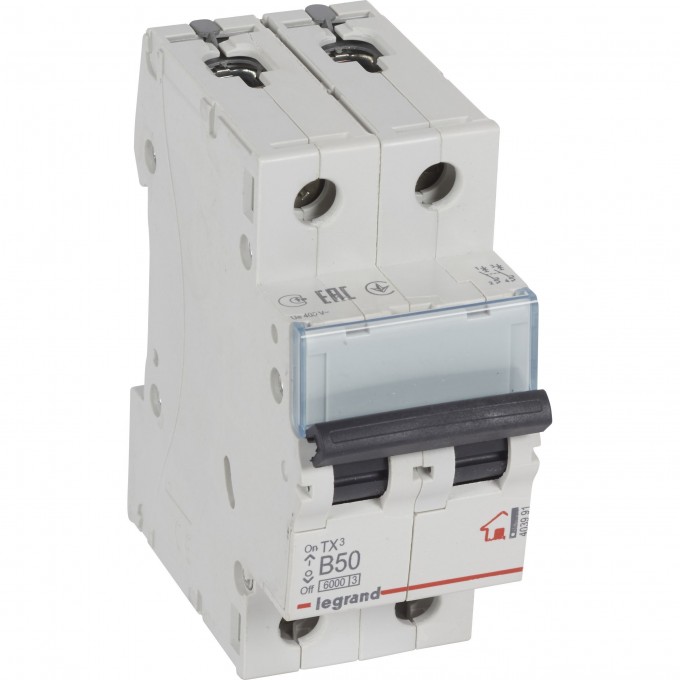 Автоматический выключатель LEGRAND TX³ 6000 6 кА тип B 2П 230/400 В 50А 2 модуля белый 403991