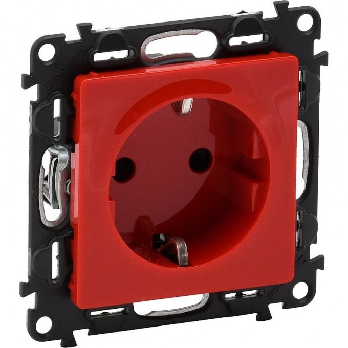 Силовая розетка LEGRAND Valena LIFE 2К+З 16А 250В с защитными шторками безвинтовые зажимы с лицевой панелью красный 753129