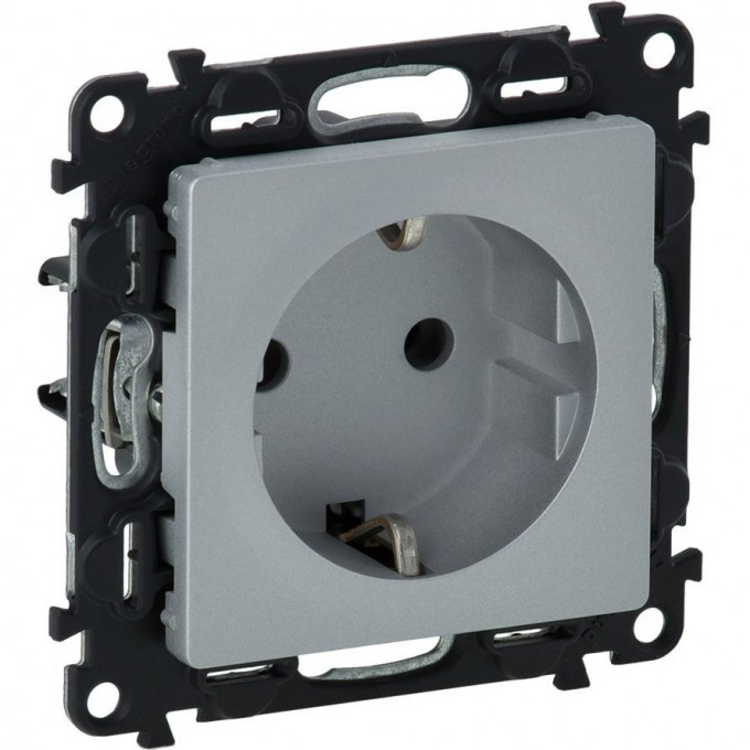 Силовая розетка Valena LIFE 2К+З 16А 250В с лицевой панелью безвинтовые зажимы алюминий 753621