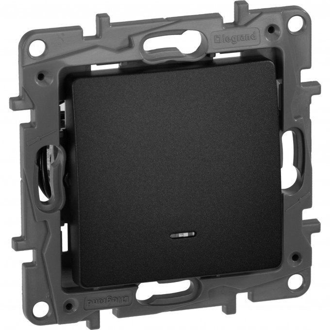 Выключатель LEGRAND Etika одноклавишный с подсветкой/индикацией автоматические клеммы 10 AX 250 В антрацит 672603